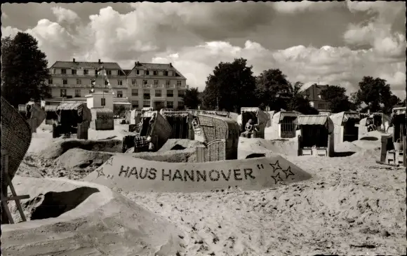 Ak Ostseebad Scharbeutz in Holstein, Haus Hannover, Strand, Strandkörbe