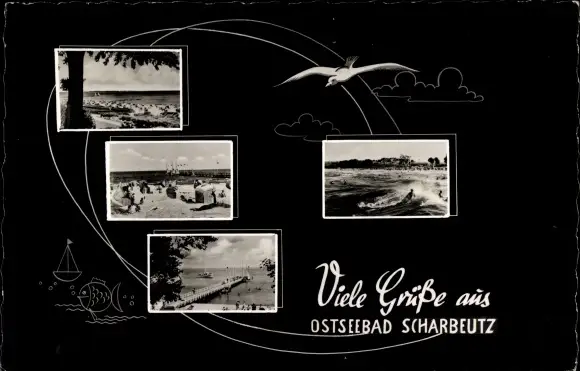 Ak Ostseebad Scharbeutz in Holstein, Möwe, Strand, Brücke