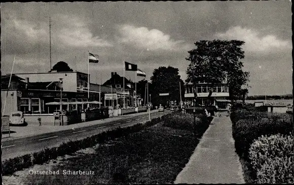 Ak Ostseebad Scharbeutz in Holstein, Promenade, Fahnen, VW Käfer