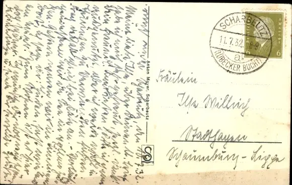 Zustand, siehe Scan, gelaufen, 1932 - ca 14 cm X 9 cm