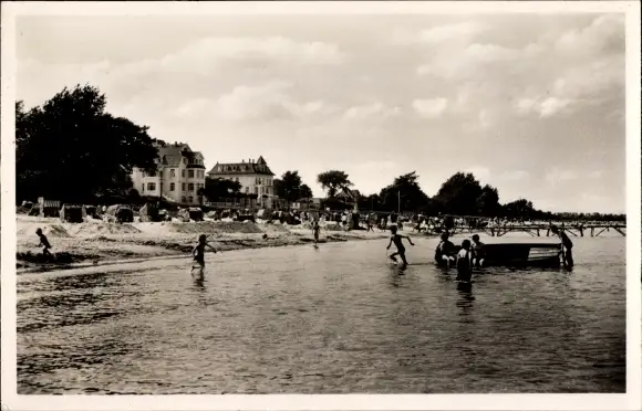 Ak Ostseebad Scharbeutz in Ostholstein, Partie am Strand, Blick über die See