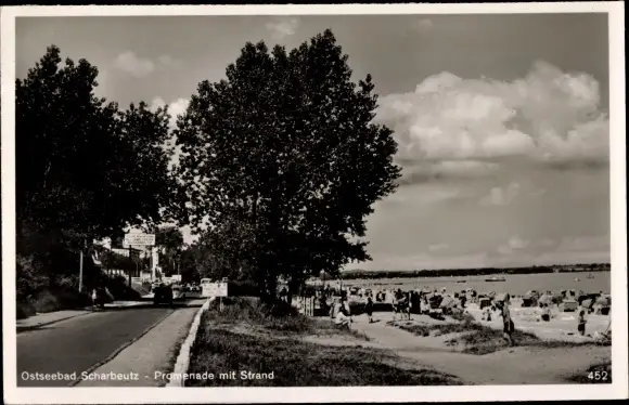 Ak Ostseebad Scharbeutz in Ostholstein, Promenade mit Strand