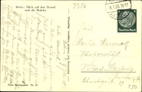 Zustand, siehe Scan, gelaufen, 1935 - ca 14 cm X 9 cm
