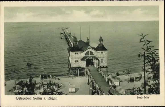 Ak Ostseebad Sellin auf Rügen, Seebrücke, Panorama