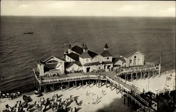 Ak Ostseebad Sellin auf Rügen, Seebrücke, Strand