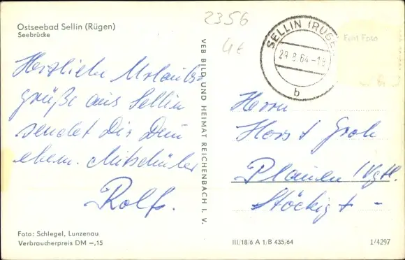 Zustand, siehe Scan, gelaufen, 1964 - ca 14 cm X 9 cm