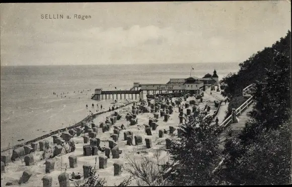 Ak Ostseebad Sellin auf Rügen, Strand, Damenbad