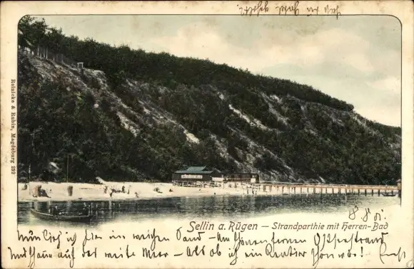 Ak Ostseebad Sellin auf Rügen, Strand, Herrenbad