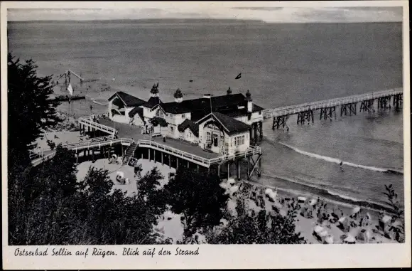 Ak Ostseebad Sellin auf Rügen, Strand, Seebrücke