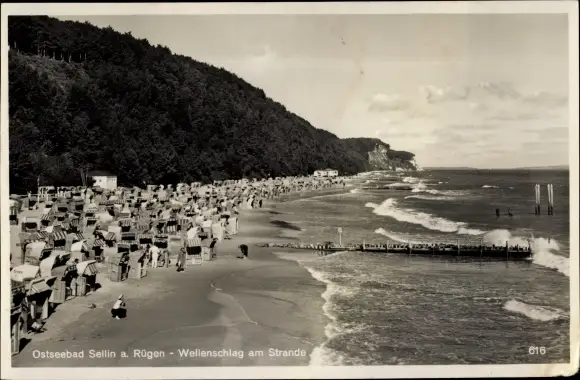 Ak Ostseebad Sellin auf Rügen, Wellenschlag am Strande