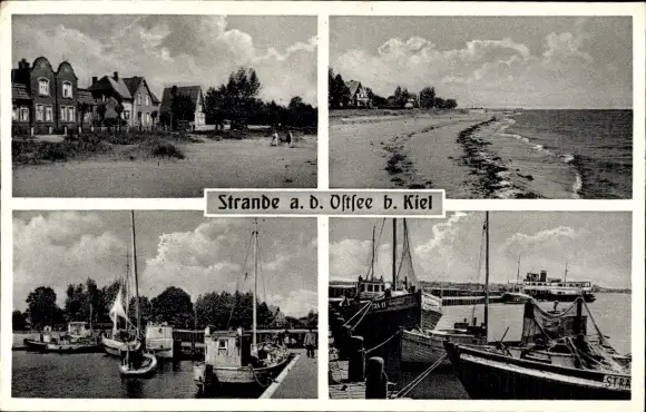 Ak Ostseebad Strande in Schleswig Holstein, Teilansicht, Hafen, Fischerboote