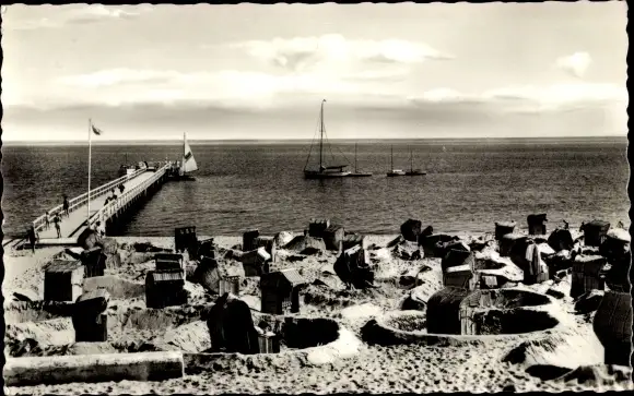 Ak Ostseebad Timmendorfer Strand, Blick zur Landungsbrücke, Strandpartie