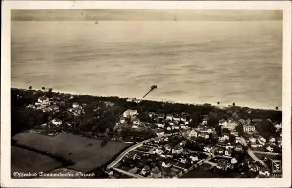 Ak Ostseebad Timmendorfer Strand, Luftaufnahme des Ostseebads, Blick auf die Küste, Wohnhäuser, P