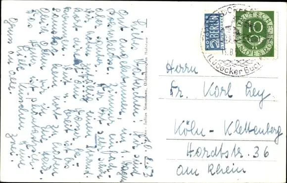 Zustand, siehe Scan, gelaufen, 1953 - ca 14 cm X 9 cm