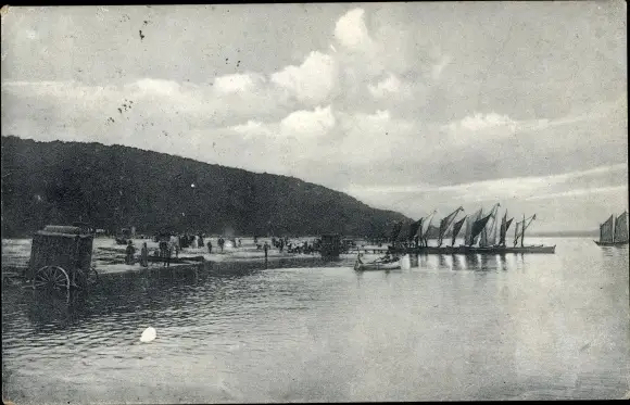 Ansichtskarte, Postkarte, Hafen, Schiffe, Boote, Dampfer, Boot