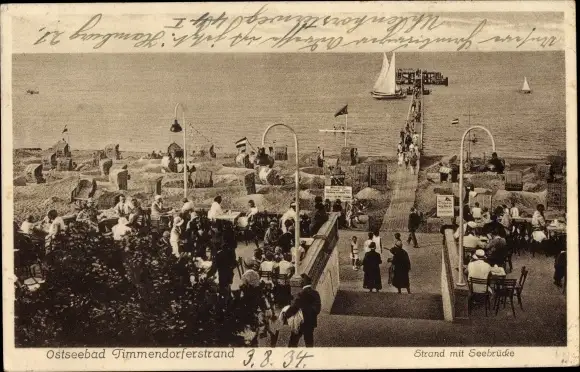 Ak Ostseebad Timmendorfer Strand, Strand mit Seebrücke