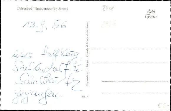 ungelaufen, datiert 1956, Rückseite beschrieben, sehr guter Zustand