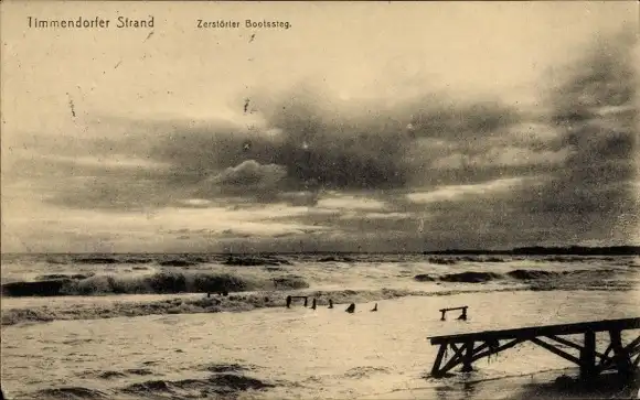 Ak Ostseebad Timmendorfer Strand in Holstein, zerstörter Bootssteg