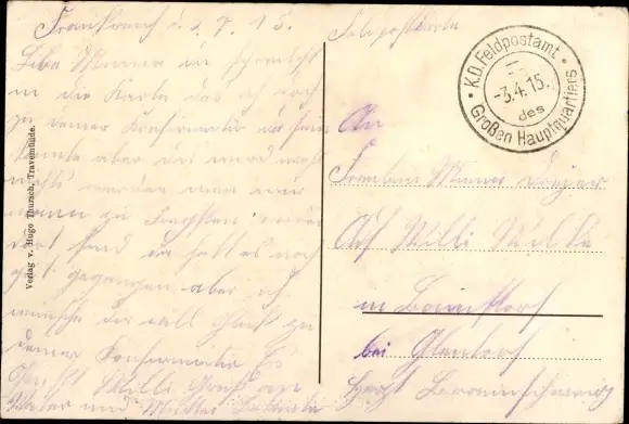 Zustand, siehe Scan, gelaufen, 1915 - ca 14 cm X 9 cm