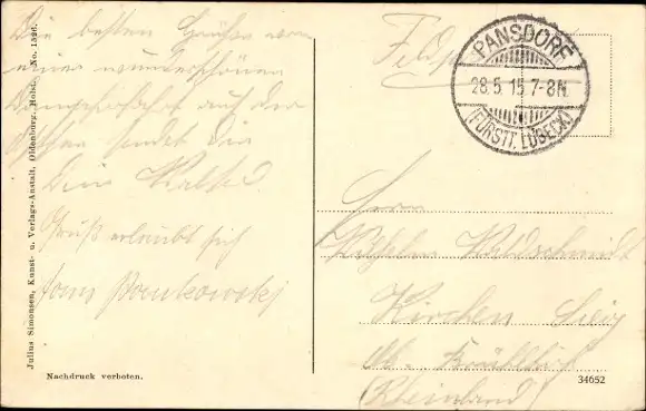 Zustand, siehe Scan, gelaufen, 1915 - ca 14 cm X 9 cm