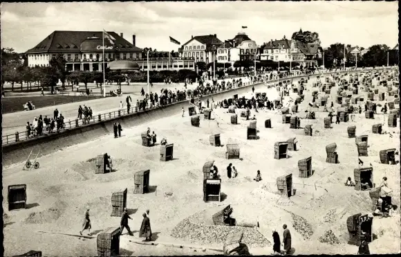 Ak Ostseebad Travemünde Lübeck, Strand, Strandkörbe, Flaggen, Promenade