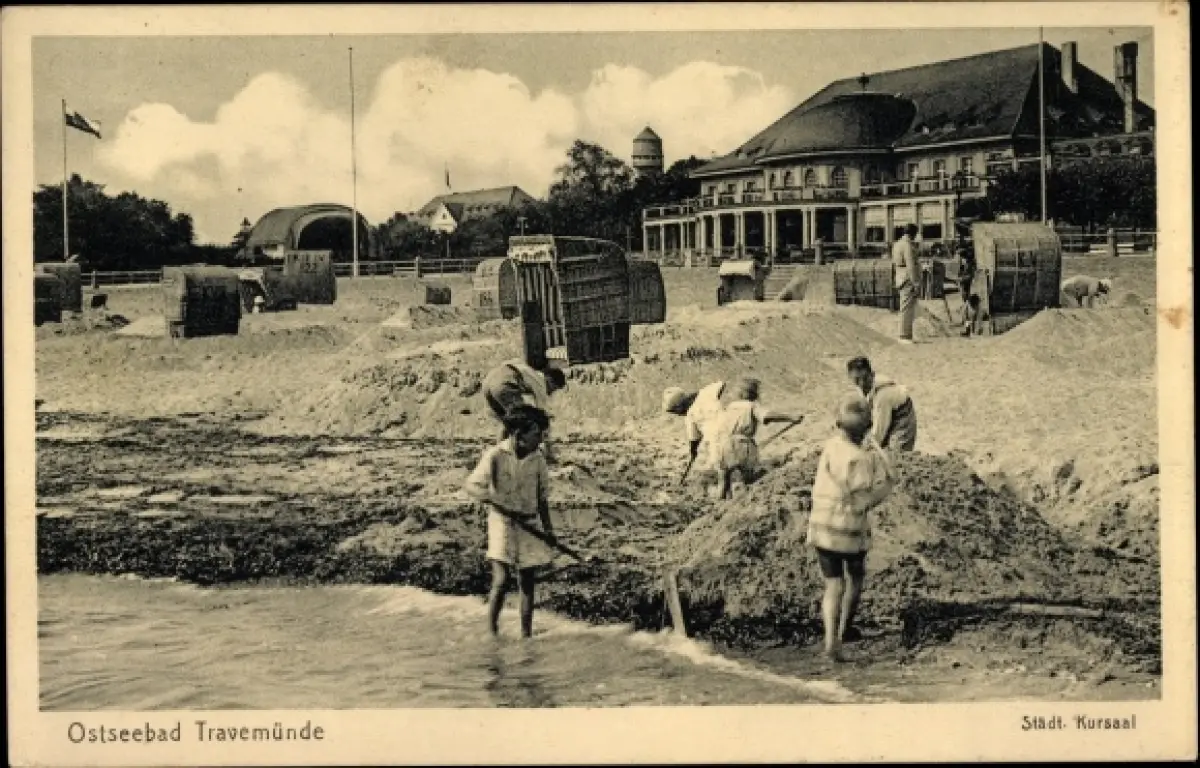 Ak Ostseebad Travemünde Lübeck, Strandpartie, Städtischer Kursaal