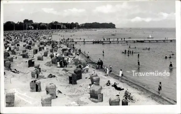 Ak Ostseebad Travemünde Lübeck, Strandpartie, Strandkörbe