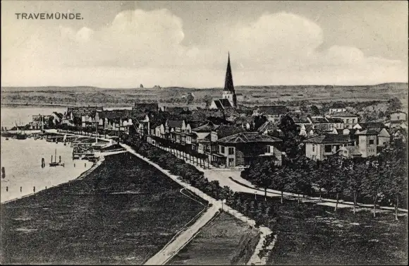 Ak Ostseebad Travemünde Lübeck, Totalansicht der Ortschaft
