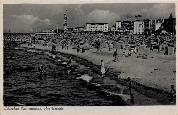 Ak Ostseebad Warnemünde Rostock, Am Strand, Strandkörbe, Leuchtturm