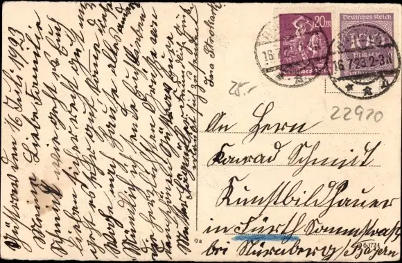 Zustand, siehe Scan, gelaufen, 1923 - ca 14 cm X 9 cm