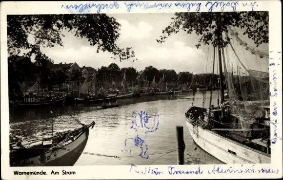 Ak Ostseebad Warnemünde Rostock, Am Strom, Fischerboote