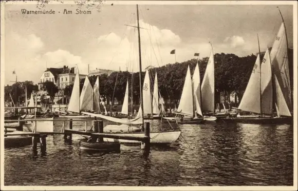 Ak Ostseebad Warnemünde Rostock, Am Strom, Segelboote