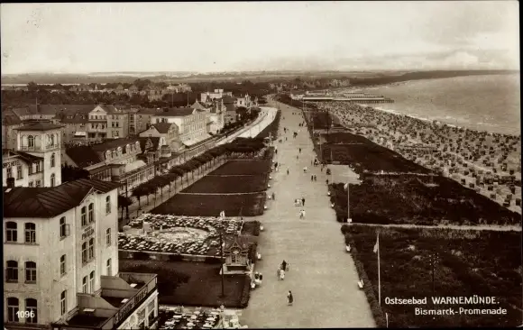 Ak Ostseebad Warnemünde Rostock, Bismarck-Promenade, Strand