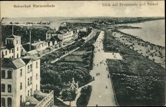 Ak Ostseebad Warnemünde Rostock, Blick auf Promenade und Strand