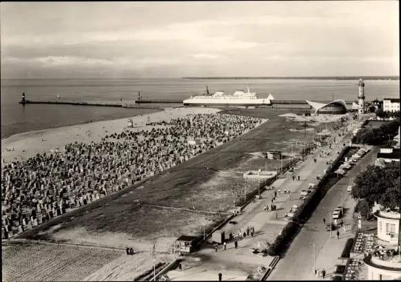 Ak Ostseebad Warnemünde Rostock, Blick vom 19. Stock des Hotel Neptun, Leuchtturm