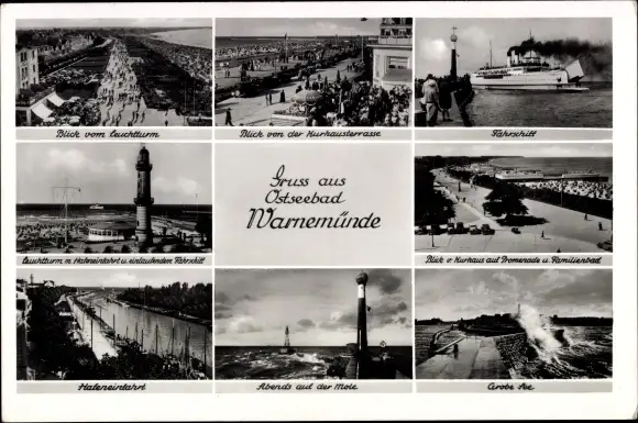 Ak Ostseebad Warnemünde Rostock, Blick vom Leuchtturm, Fährschiff, Hafeneinfahrt, Grobe See
