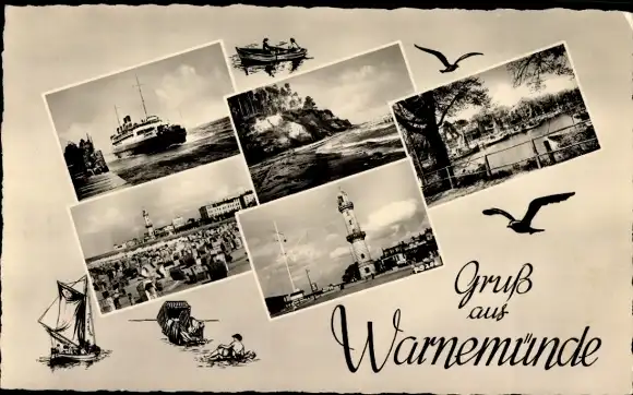 Ak Ostseebad Warnemünde Rostock, Dampfschiff, Strand, Hafen, Leuchtturm