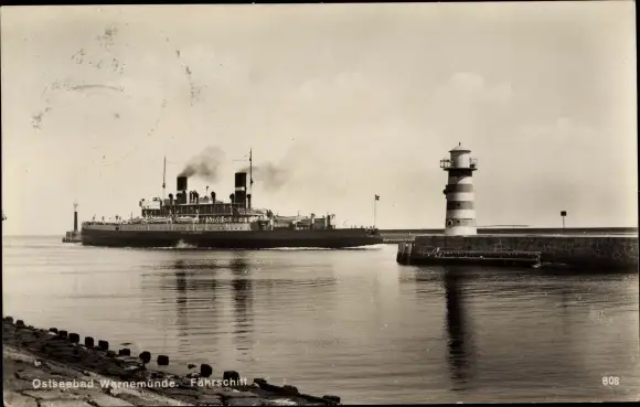 Ak Ostseebad Warnemünde Rostock, Fährschiff, Leuchtturm