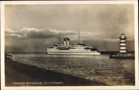 Ak Ostseebad Warnemünde Rostock, Fährschiff Schwerin, Leuchtturm