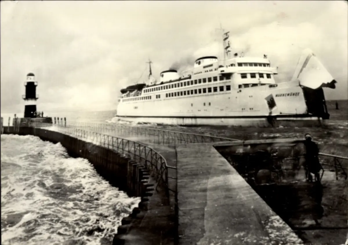 Ak Ostseebad Warnemünde Rostock, Fährschiff Warnemünde an der Mole