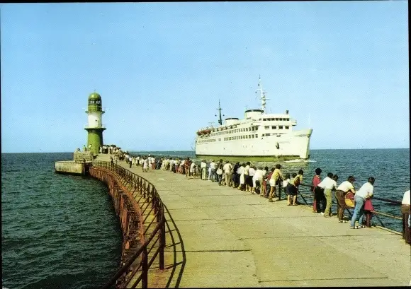 Ak Ostseebad Warnemünde Rostock, Fährschiff an der Westmole