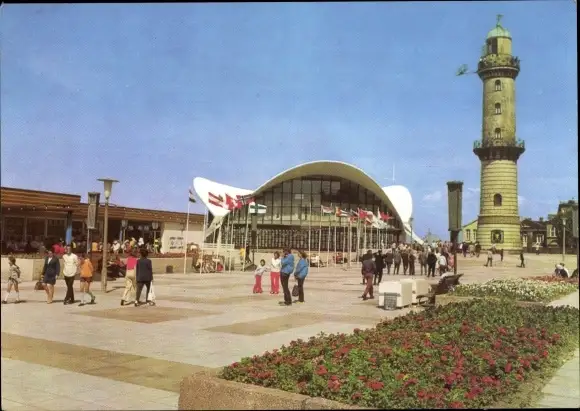 Ak Ostseebad Warnemünde Rostock, Gaststätte Teepott, Leuchtturm