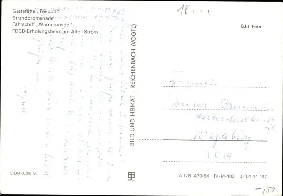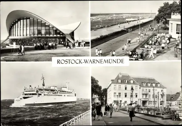 Ak Ostseebad Warnemünde Rostock, Gaststätte Teepott, Strandpromenade, Fährschiff Warnemünde
