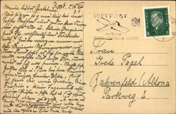 Zustand, siehe Scan, gelaufen, 1931 - ca 14 cm X 9 cm