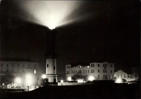 Ak Ostseebad Warnemünde Rostock, Leuchtturm, Nacht