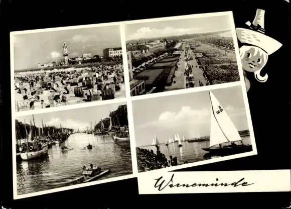 Ak Ostseebad Warnemünde Rostock, Leuchtturm, Strand, Promenade, Alter Strom, Boote