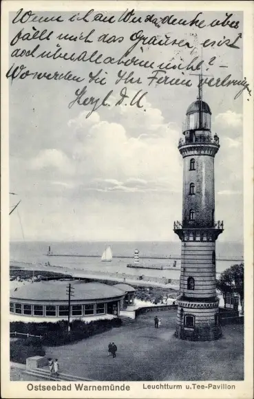 Ak Ostseebad Warnemünde Rostock, Leuchtturm, Tee-Pavillon