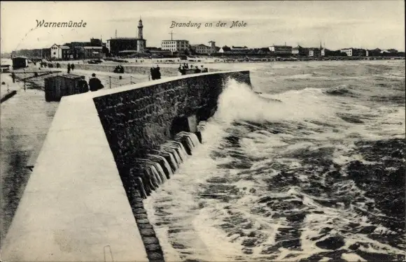 Ak Ostseebad Warnemünde Rostock, Mole, Brandung