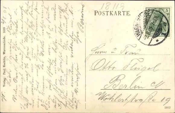 Zustand, siehe Scan, gelaufen, 1908 - ca 14 cm X 9 cm