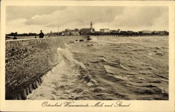 Ak Ostseebad Warnemünde Rostock, Mole, Strand